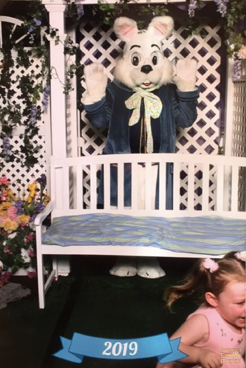 “Easter 1999 with what I think is a bunny and my 4 kids.”