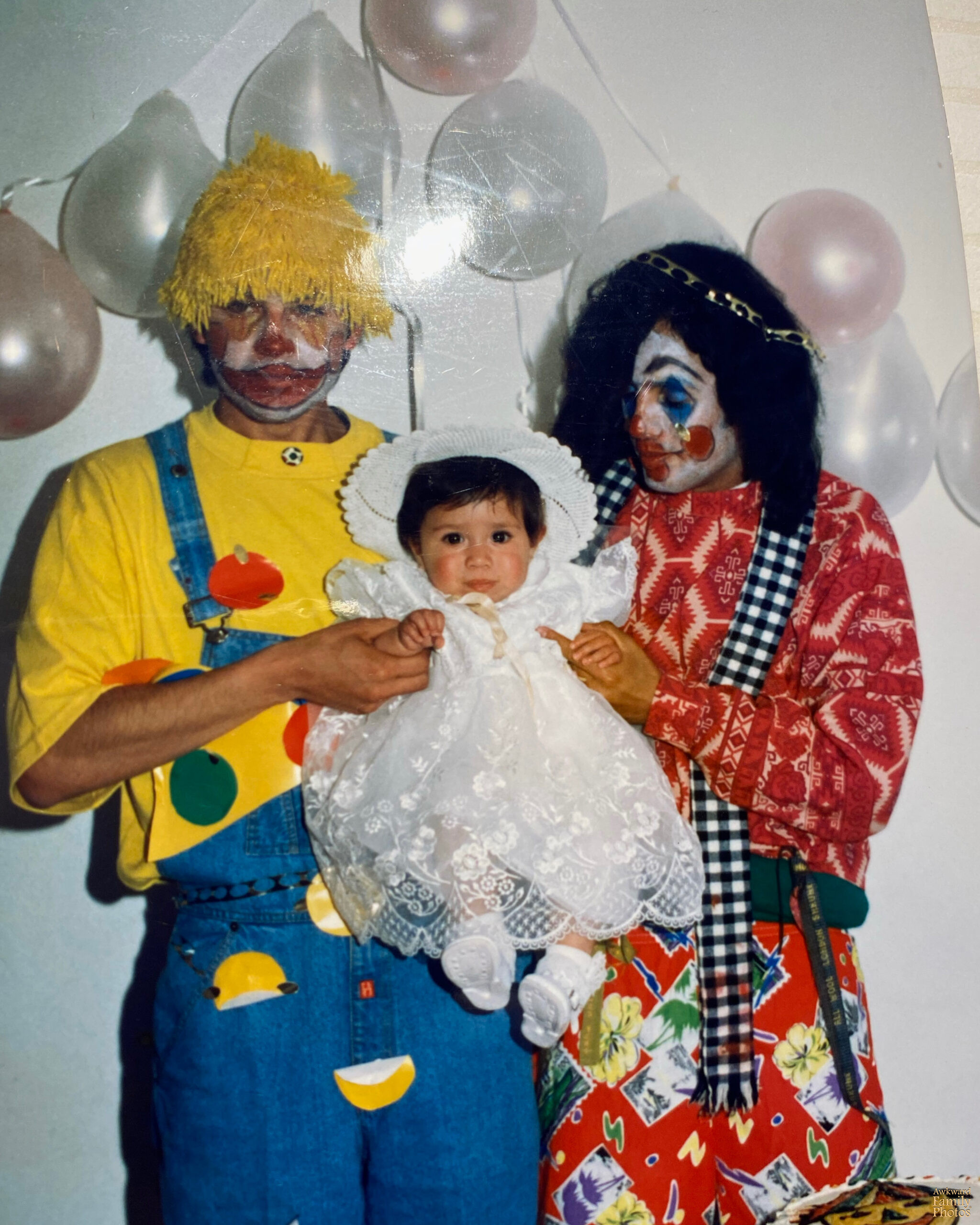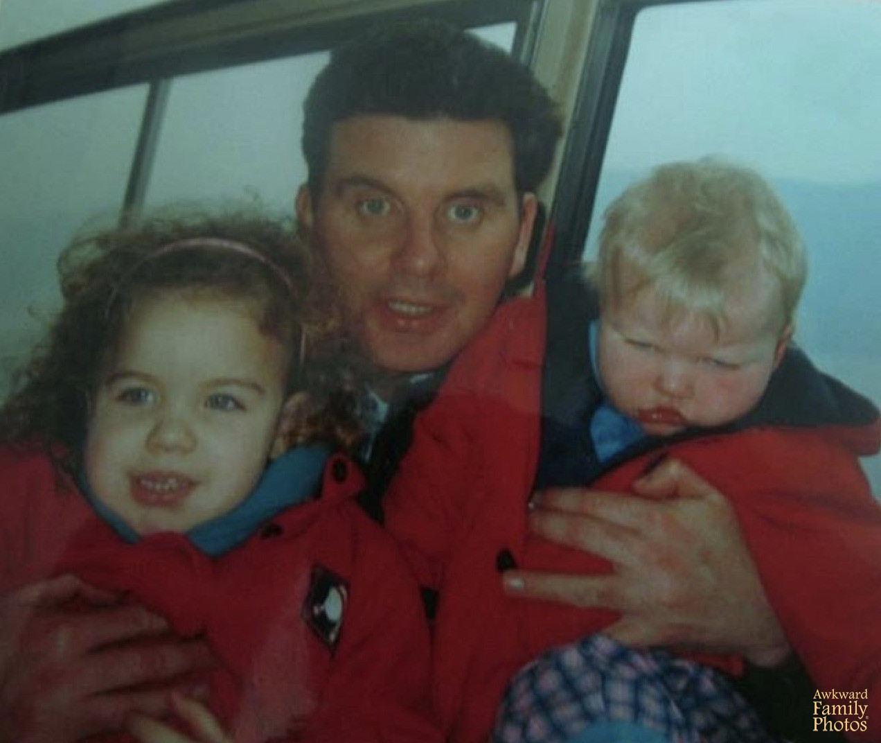 “This is a photo of my younger sister, (mummified), my older brother, (proud as ever), and me (“I didn’t do it”). My favorite part of this picture is how, even though you can’t see my little sister’s face, you can tell she is smiling in a very “TA-DA!” way, and I can only imagine how proud she was to be our model. I don’t remember when this was taken, but I can look at the craftsmanship in the placement of the streamers, and the excellent color blocking techniques, and I know that’s my fabulous work – my brother must have been the project manager/supervisor. My siblings and I have talked about recreating this picture for our mom now that we are all in our 20’s, but it has been really hard to drum up this collection of oddly specific t-shirts.”