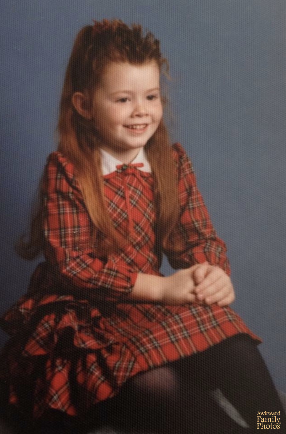 “We’re a big sports family and basketball is particularly valued. With nearly every kid having taken their turn on the court (and their father as the team coach more than once), we decided to forego the traditional fireplace/piano/studio family photo one year for this “jump ball” monstrosity staged in a high school gym with me as the ref, my parents as the coaches (notice my dad yelling at me) and my brothers and sisters as the players.”