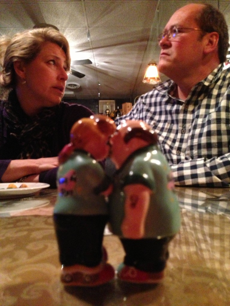 “The salt and pepper shakers at this restaurant resemble my parents.”