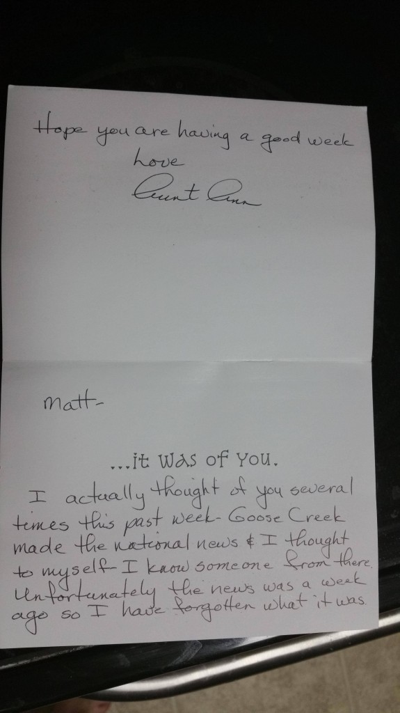 “My friend got a letter from his great aunt who he has only met a couple times in his life.”