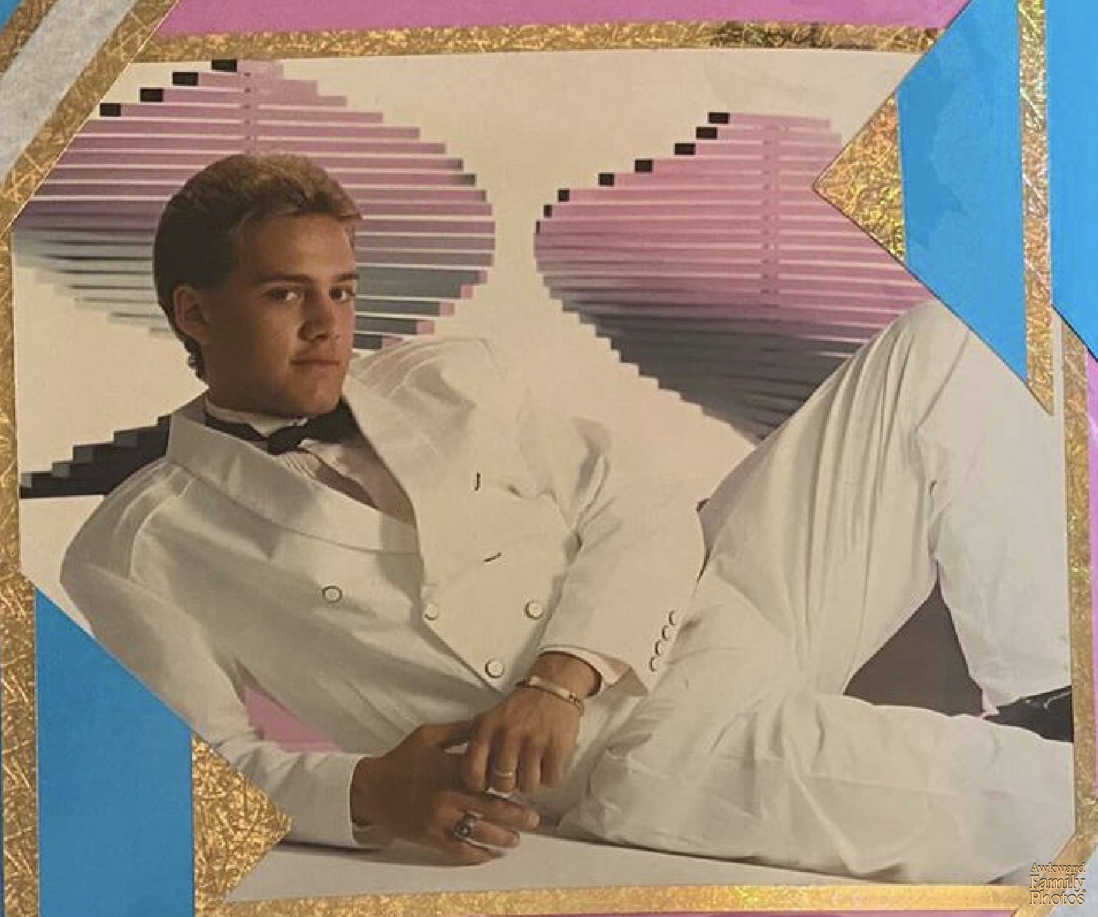 “My hubby’s bad hair in high school. This photos surfaces every now and then.”