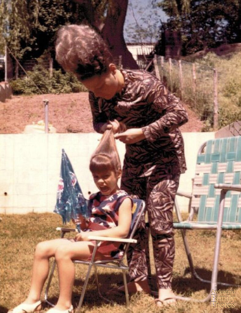 “This is me in my backyard with my mother when she was styling my hair.”